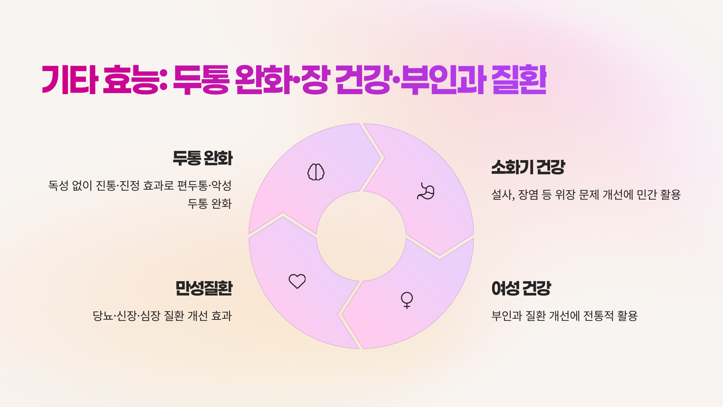 | 차가운 성질 | 몸이 차거나 소화기가 약한 경우 과다 섭취 시 복통, 설사 유발 가능. 소량으로 시작하여 반응을 살피세요. |